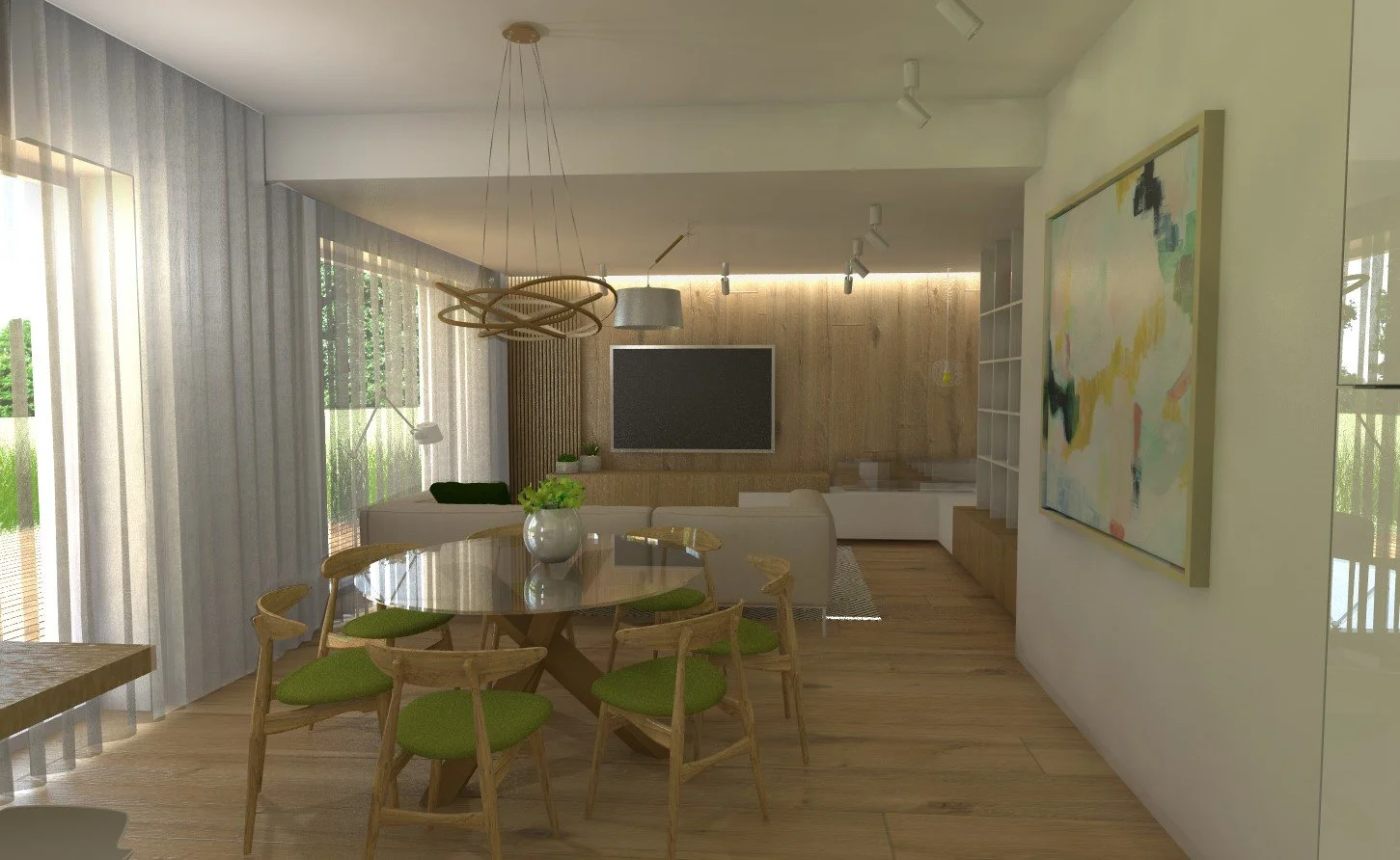 INTERIÉR OBÝVACEJ IZBY S INTEGROVANOU KUCHYŇOU